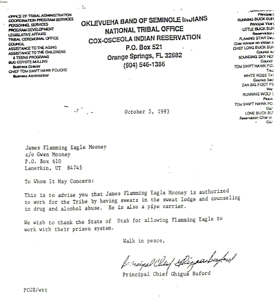 **Seminole Sacred Prayer Pipe – Confirmation Letter